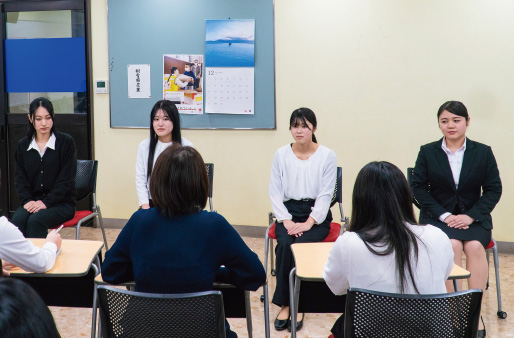 サポート!航空会社でも導入されているメンター(先輩)がメンティ(後輩)をサポートする制度。先輩と後輩の結びつき、一体感。さらには、同じ夢を持ち一緒に頑張っていける仲間、絆の強さが個々の成長と業界就職へのモチベーションを高めます。このあったかな関係性は、卒業してからもずっと続く広島外語最大の魅力です。