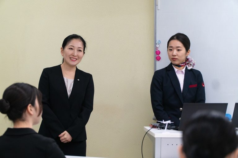 先日、株式会社JALスカイ大阪さまより、採用担当の方にお越しいただき、エアラインコース1年生の学生を対象に学内にて企業説明会を実施していただきました🙇🏼♀️