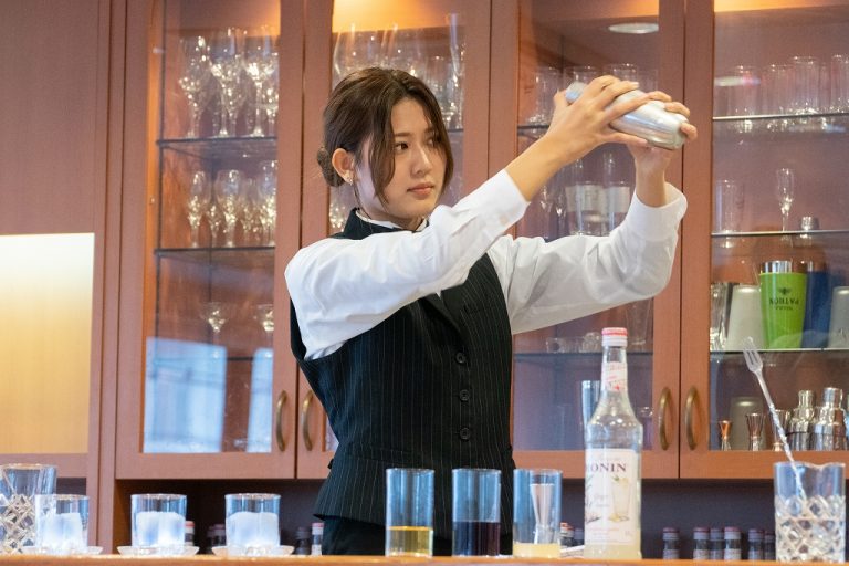 学生一人ひとりが創意工夫を凝らして考えたカクテルを現役バーテンダーである審査員の方々の前で作成し、礼儀・味・テクニックなどを審査していただきます。