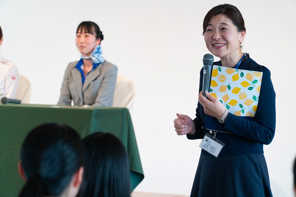 高校生の皆さんからは「とっておいた方が良い資格」や「グランドスタッフとして働いている中で大事にしている事」、「グランドスタッフになるまでに一番大変だったこと」など、沢山の気になる質問が飛び交いました!どれも丁寧に本音で答えていただき、とても為になる時間になりました😊