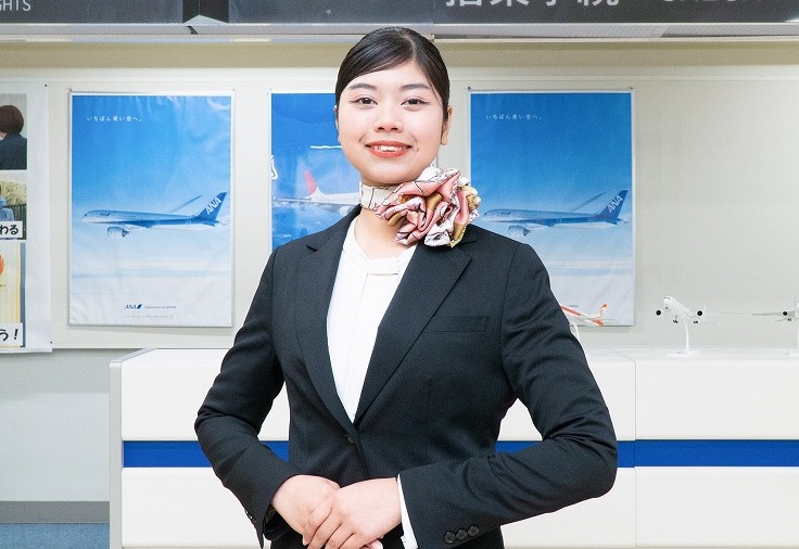 入学前は、自分に自信がなく、エアライン業界で働けるのか不安でした。でも、エアラインコースで専門的な授業を受け、現場経験のある先生のもとで「お客さまを想うfor you」の気持ちを学び、業界への理解を深めることで自信を持てるようになりました。