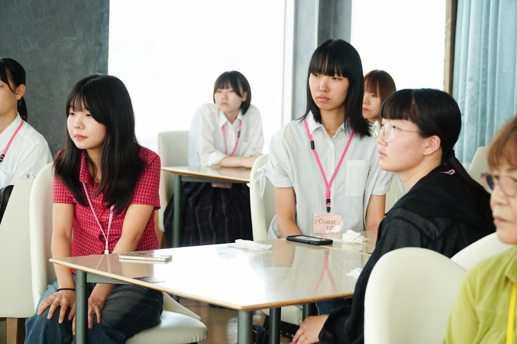本校ホテルコースの卒業生2名との座談会では、参加者に事前に書いてもらったアンケートを基に、お仕事内容ややりがい、大変なこと、ホテル業界を目指したきっかけ、広島外語を選んだ決め手など、沢山の質問に答えていただきました!外国人ゲストもたくさん訪れるホテルの第一線で活躍する現役ホテルスタッフならではの貴重なお話を沢山聞く事ができました。