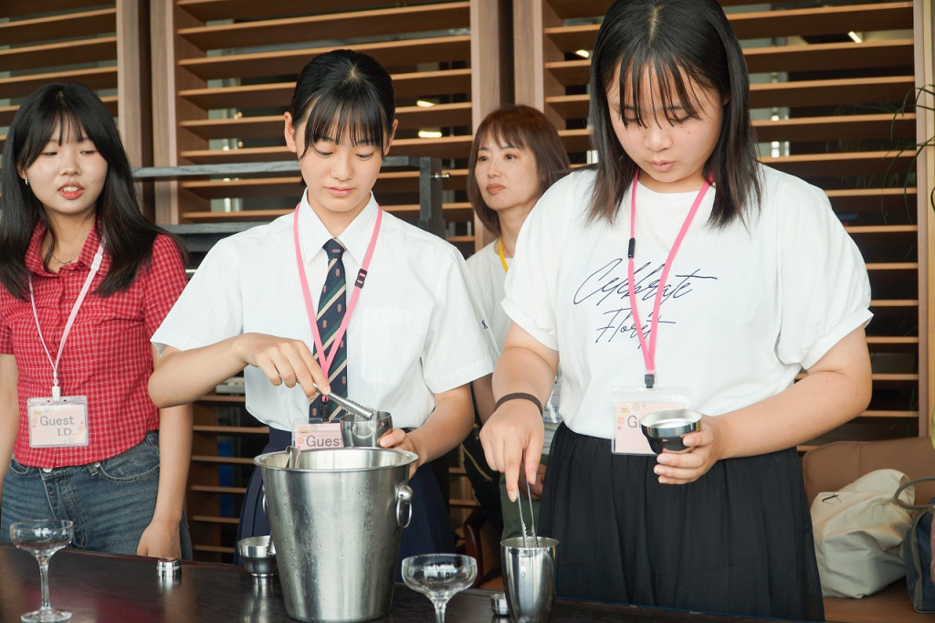 シェイカーの持ち方や構え方、かっこよくグラスに注ぐ際の立ち振る舞いなど色々な事を学びながら作ることができました!😊