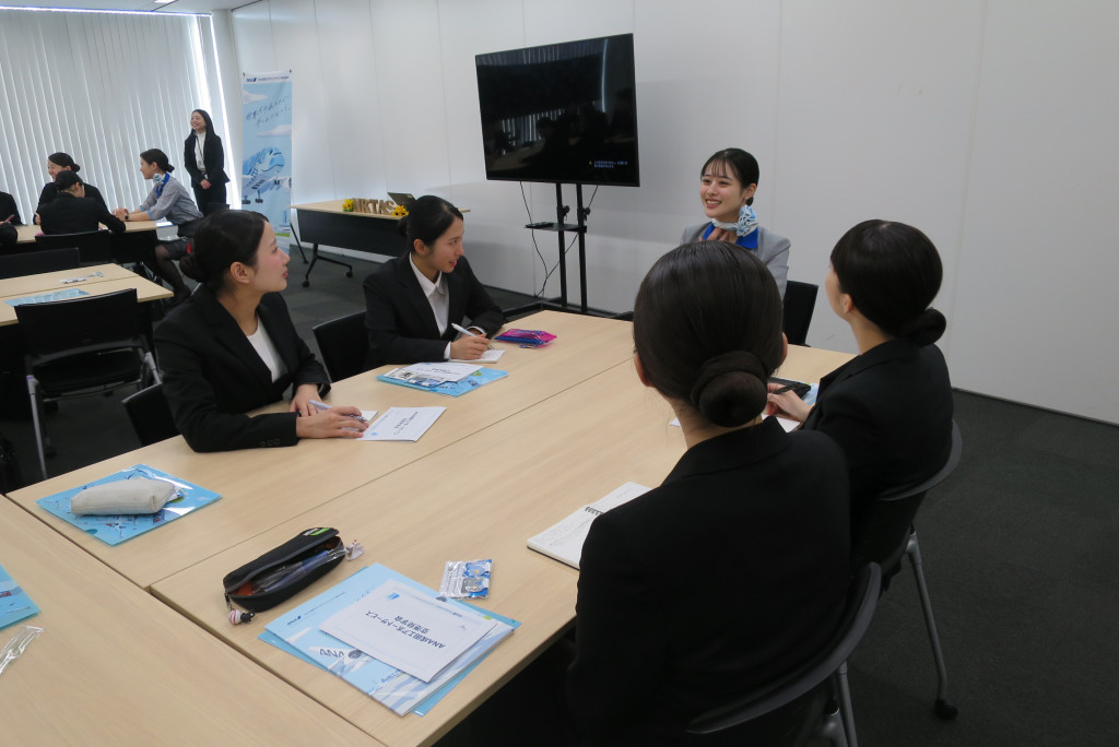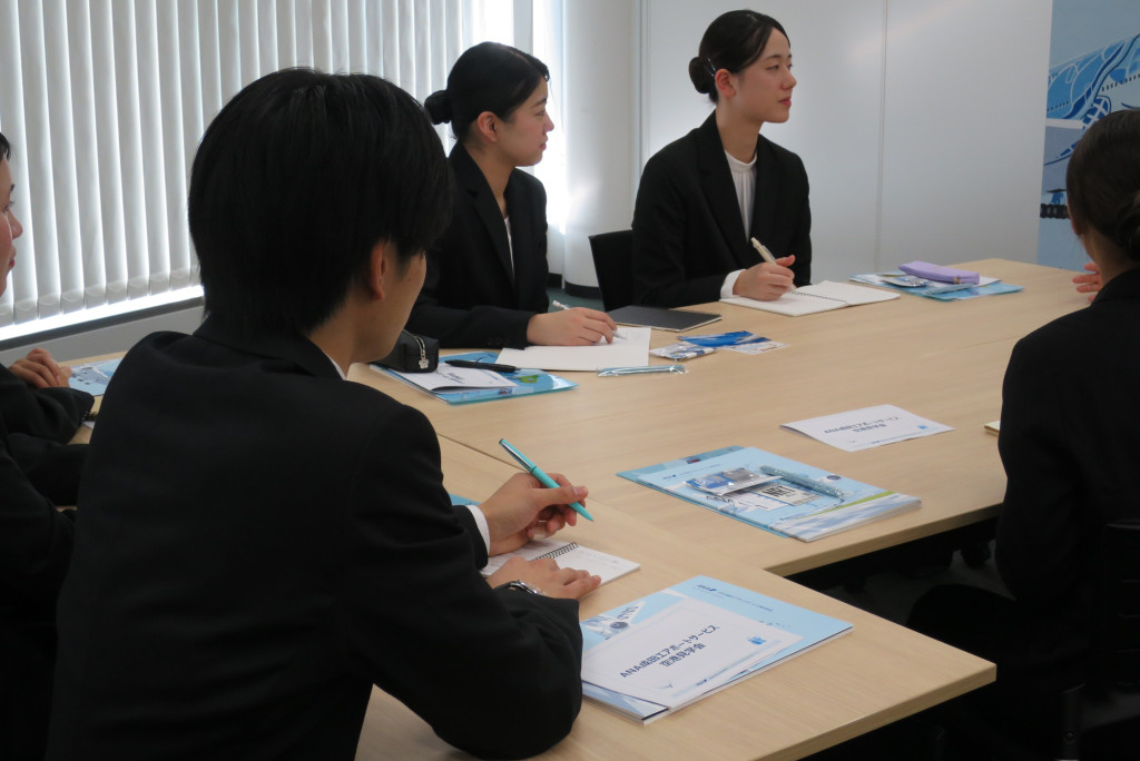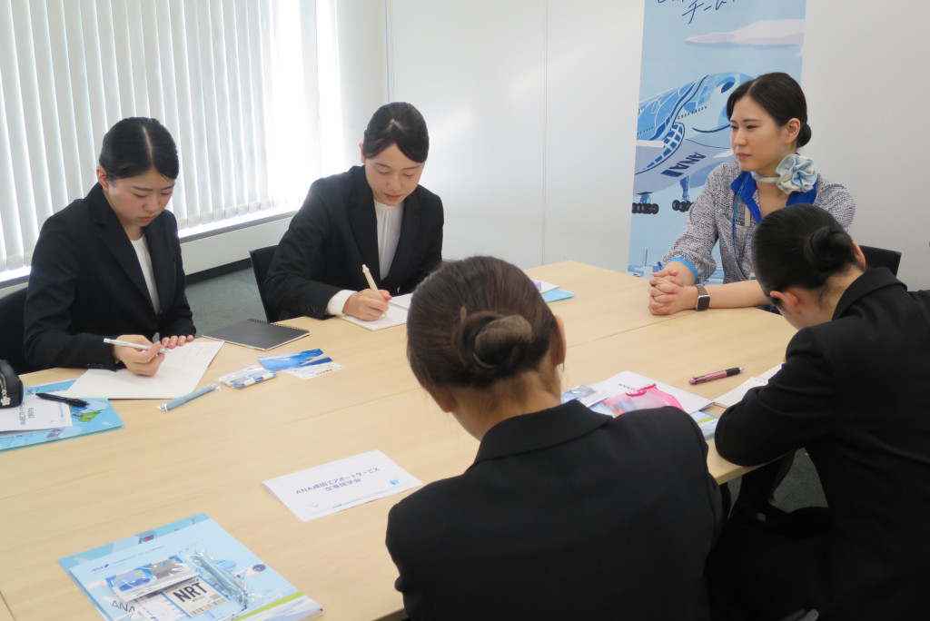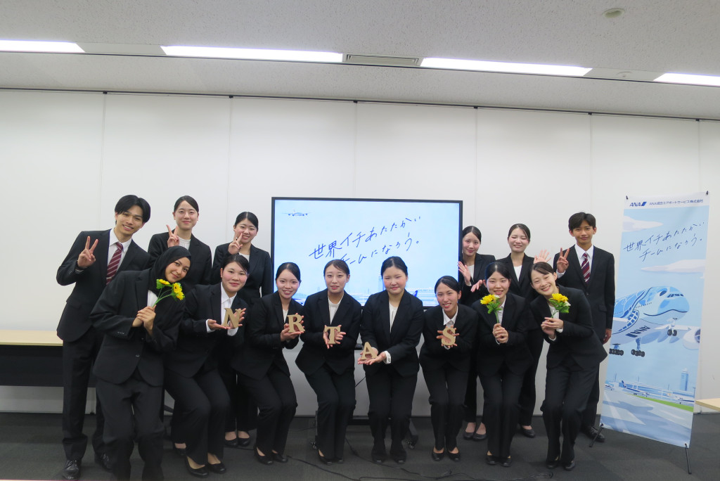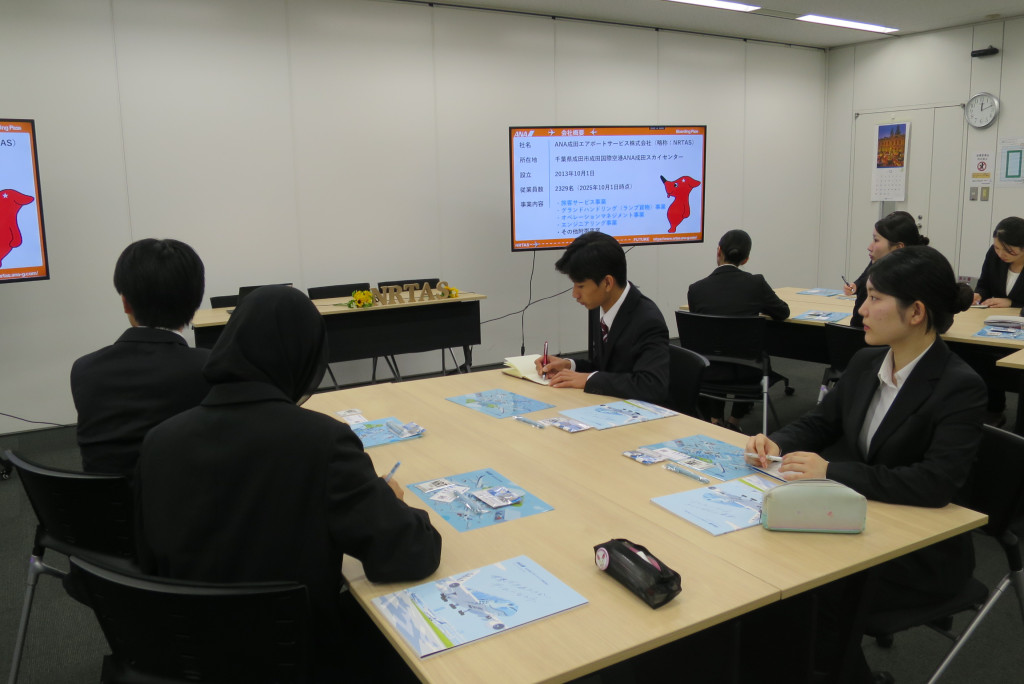 ANA成田エアポートサービス株式会社様による企業説明会やターミナル見学、社員の皆さまとの座談会を実施していただきました。