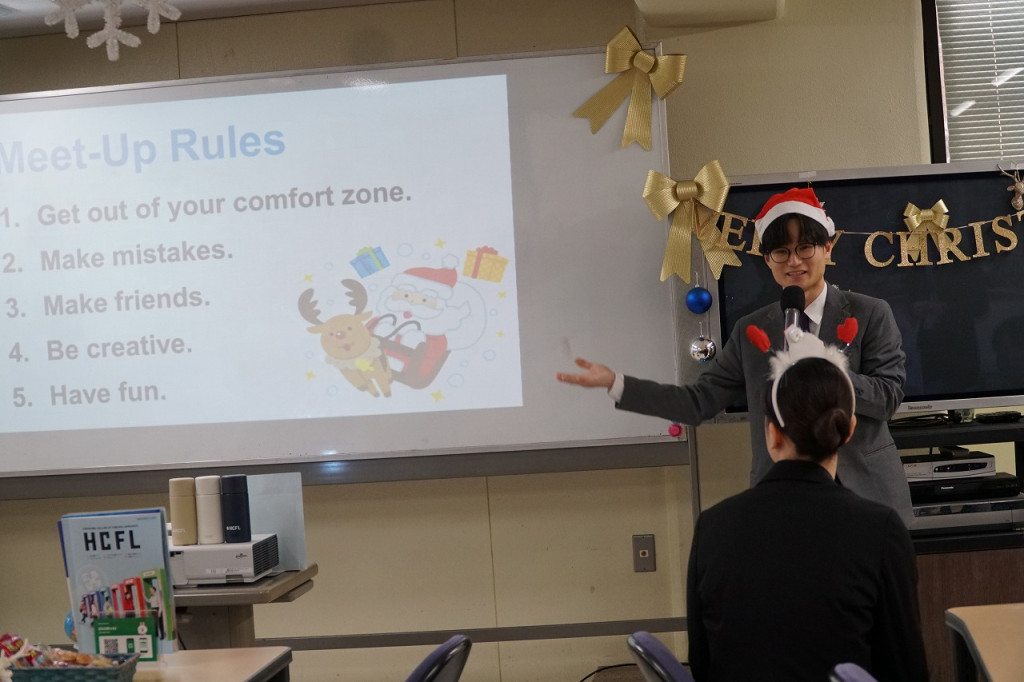 「Meet-up~クリスマスversion~」という事で、いつもの英語で自己紹介のあとに、