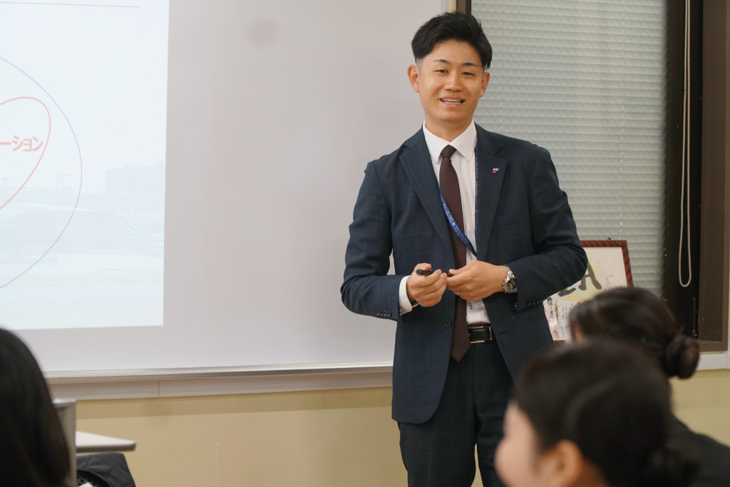 説明の中では、それぞれの業務内容だけでなく、実際の現場での経験を交えながら、安全管理の重要性や、限られた時間の中で正確な対応が求められる空港業務の特性についてお話しいただきました。