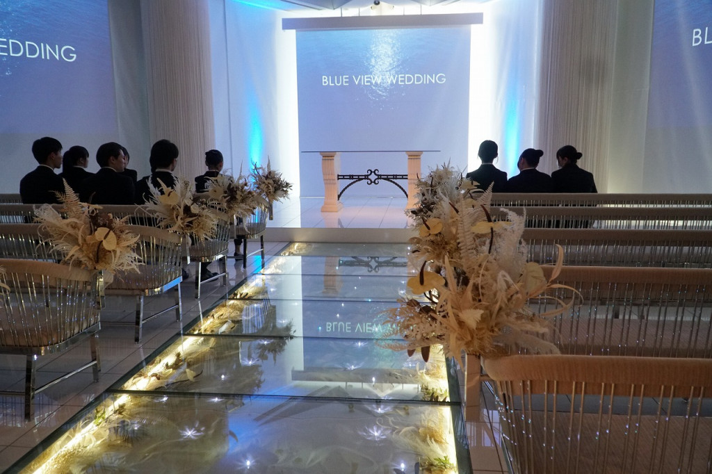 180度に広がる瀬戸内海の絶景に包まれるオーシャンビューチャペル「ラルミエールヌーベル」では、