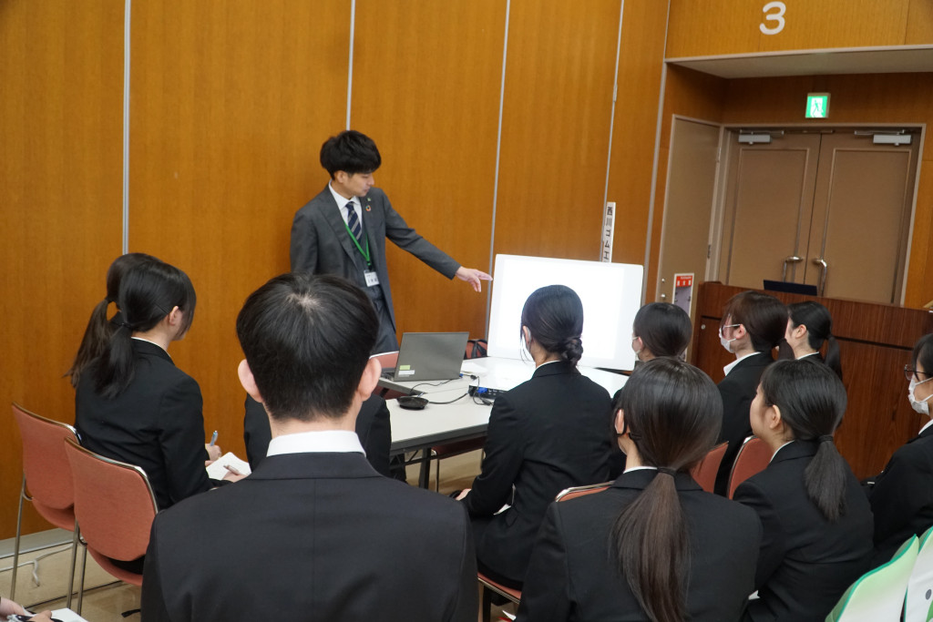 本学園の学生のためだけに企業の人事ご担当者様にお越しいただき、仕事内容や企業理念、求める人材などを詳しくご説明いただきました。